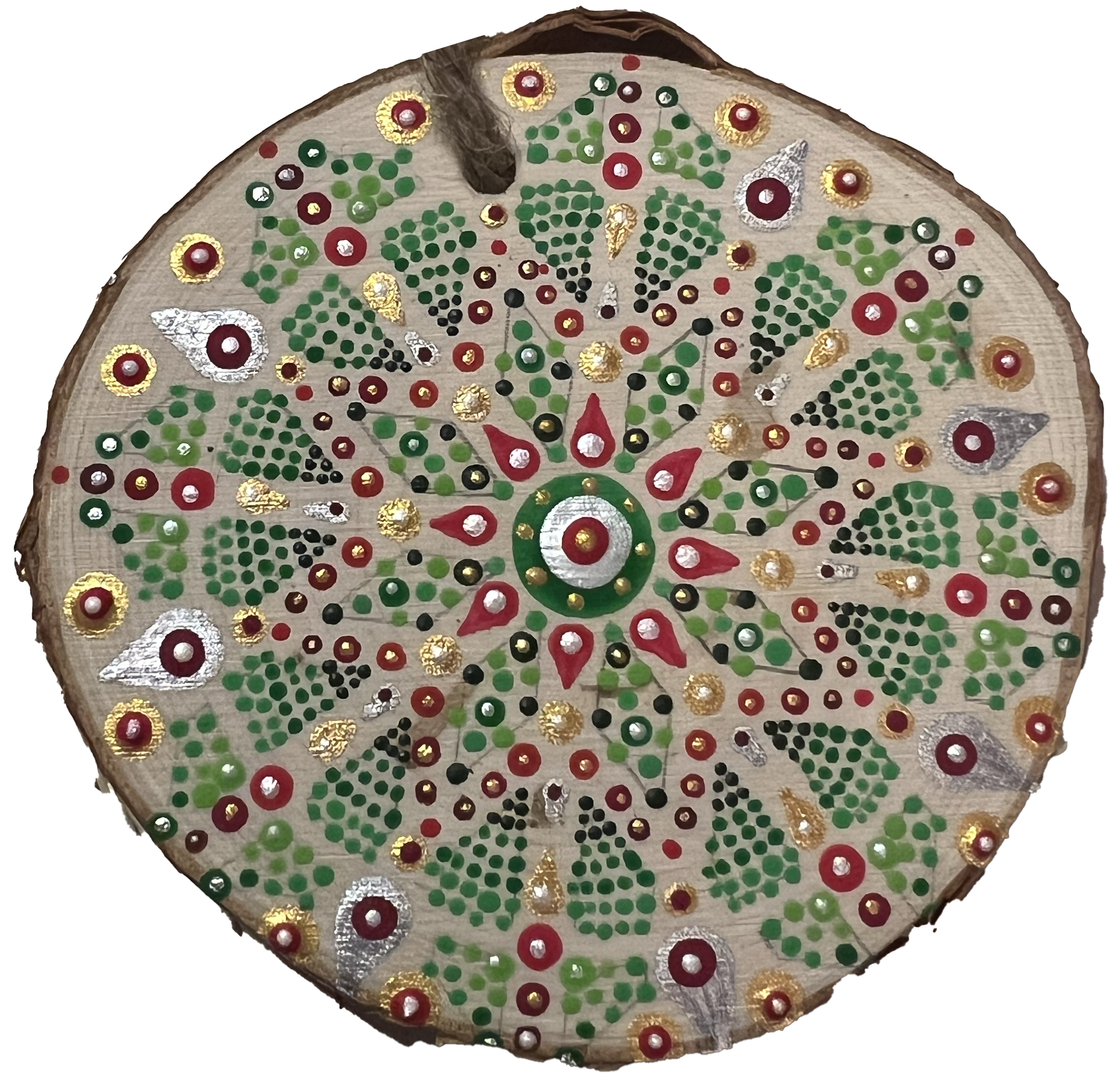 I didn’t have much time when I got home. I was feeling slightly festive, albeit with a depleted social meter. I decided on a small mandala on a piece of wood. It’s kinda cute. I still need to erase my pencil marks, though.