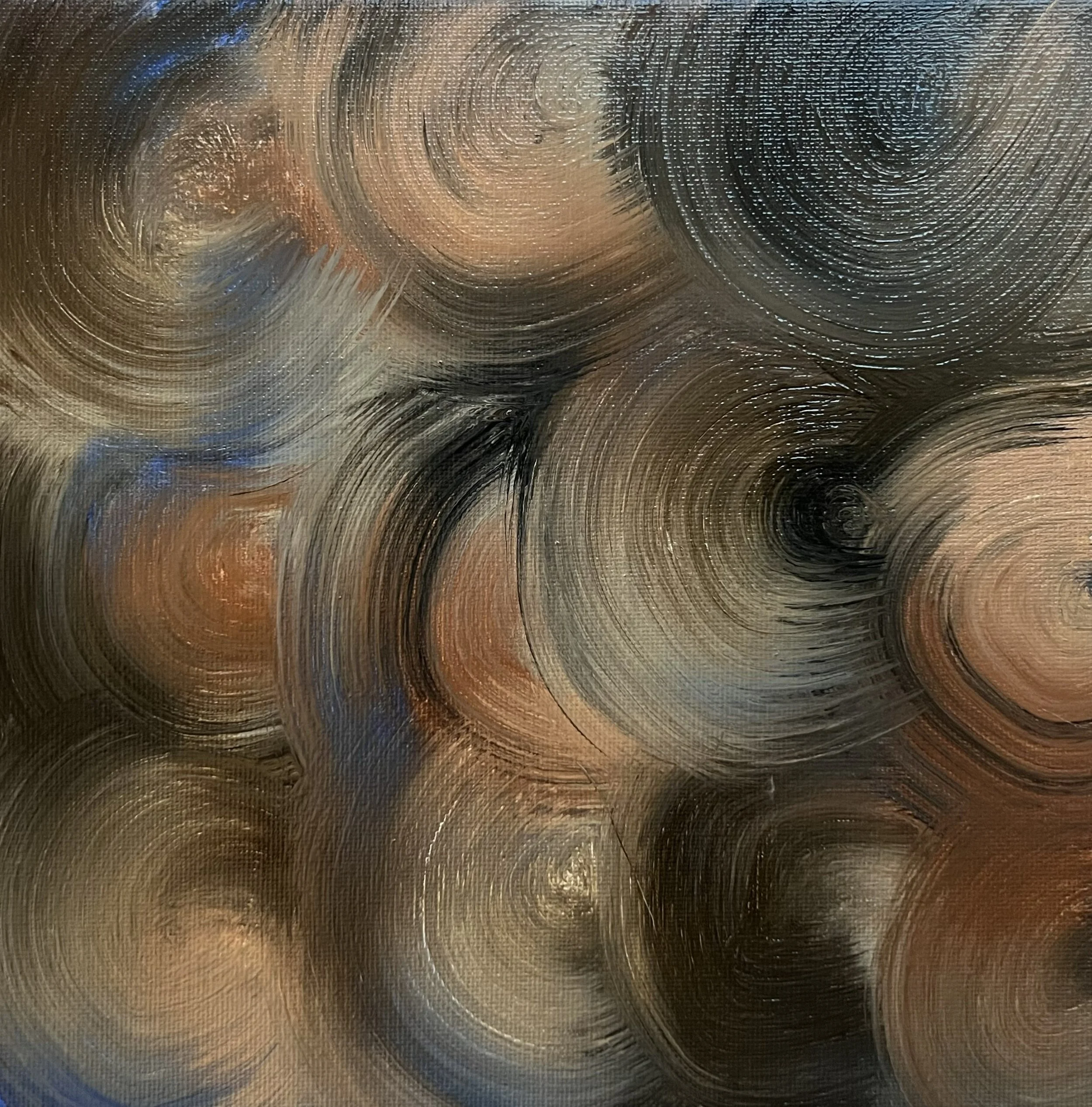 Did this painting first thing this morning. Grabbed the colors that conveyed how I feel, so naturally browns of various shades. A little blue in there for feeling… well… blue. Smooshed it all together. I’m also a tiny bit dizzy, so swirls seemed apropos.
