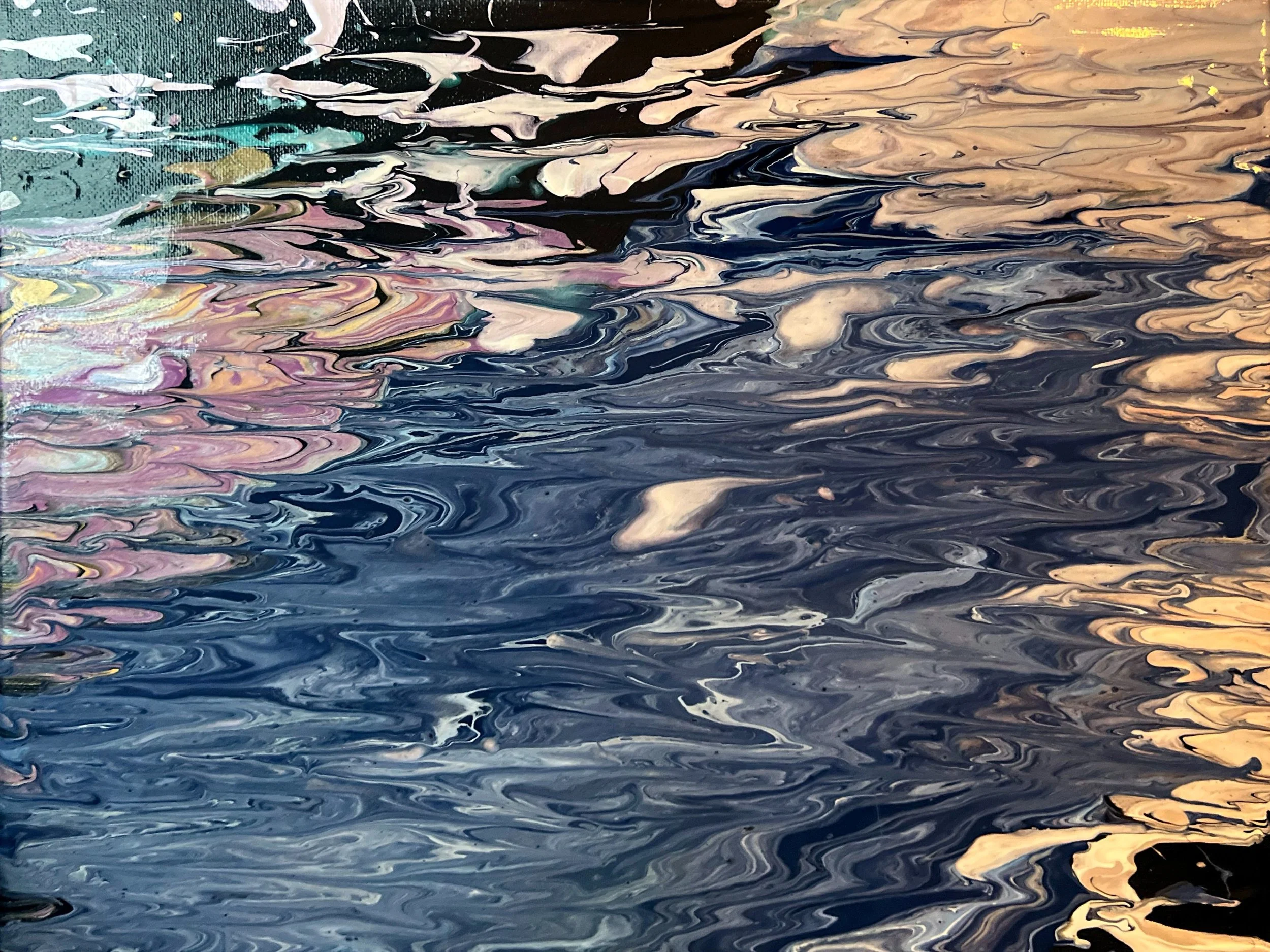 This isn’t even a paint pour, really. This was throwing paint on the canvas and flinging it around.