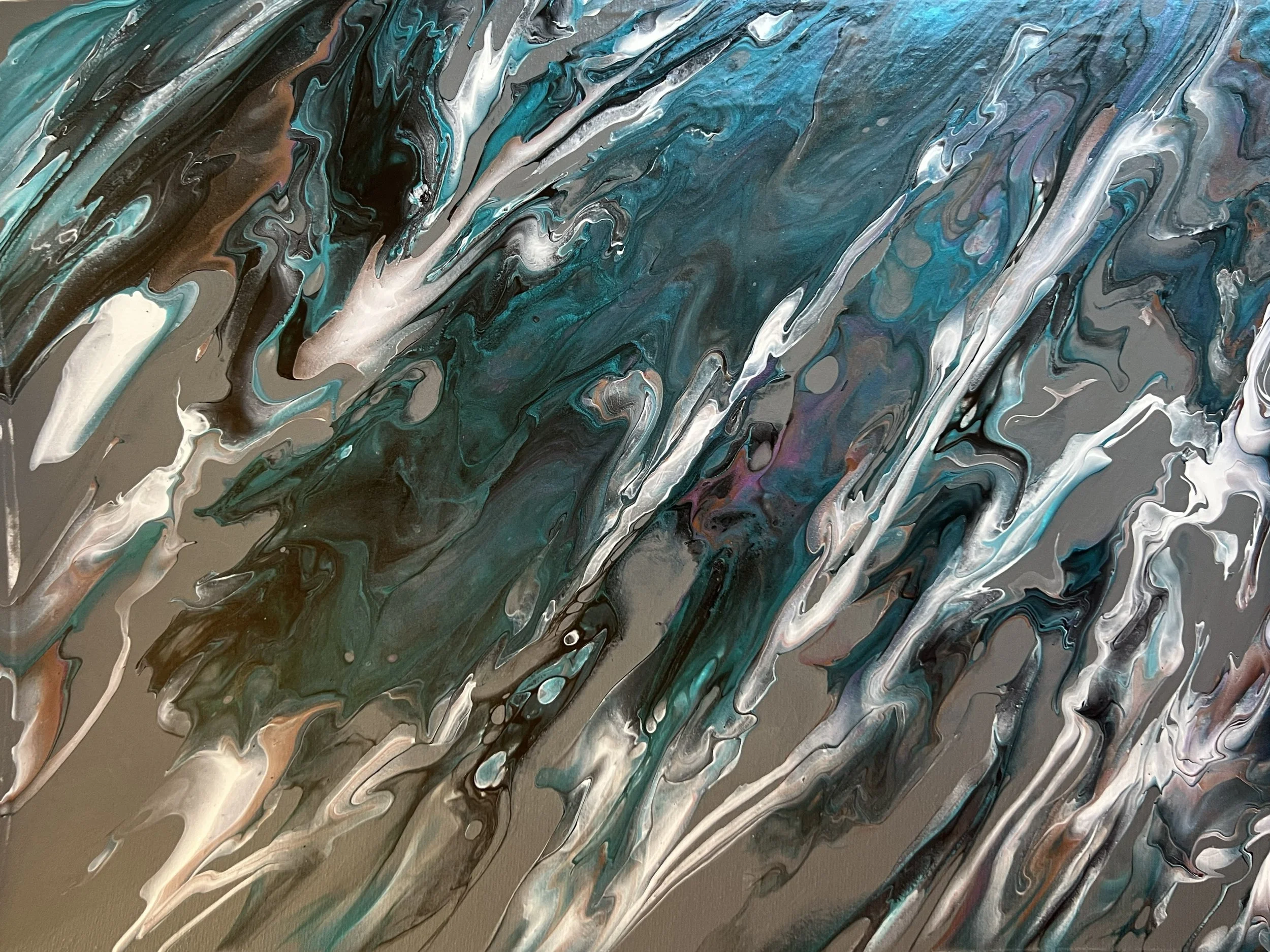 I have so much to do tonight to prep for hosting Thanksgiving tomorrow, so a paint pour was about all I had time to do. I’m honestly surprised that I had any color at all and that it’s not all black and gray. I attempted a technique I saw on Instagram, where they layered the paint on a mini dustpan and gently layered it on to make these cool stripes. It obviously didn’t work for me. I think the paint was too thick. After the unsuccessful pour, I used a hair dryer to spread it out, then tilted the canvas. It wasn’t the look I was intending, but it was the look I needed.